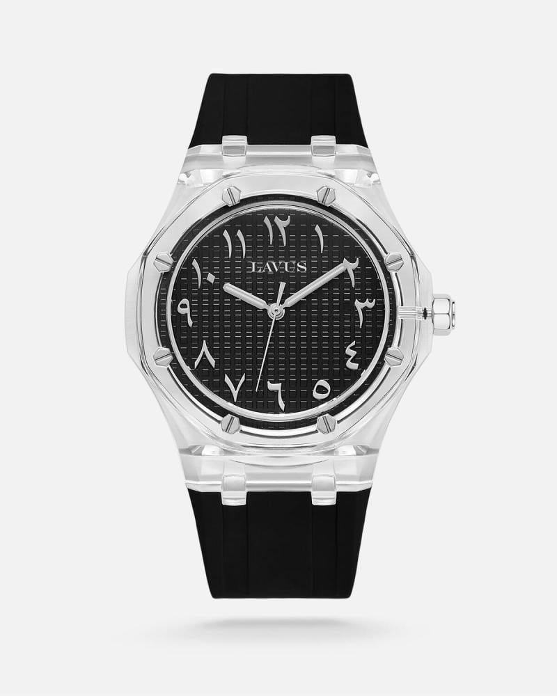 اختَر الساعة الرجالية الشفافة بحزامها الأسود الجذاب، واجعل كل نظرة إلى معصمك تأكيداً على أن الفخامة بسيطةٌ عندما تأتي بتفاصيلٍ استثنائية.